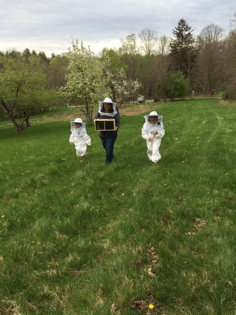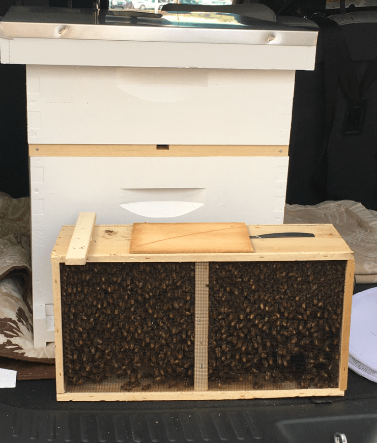 The bees have arrived! Finally, our wait was over. The family’s first hive was purchased and a package of bees was ordered from an apiary in Georgia. Who knew that bees came in packages?